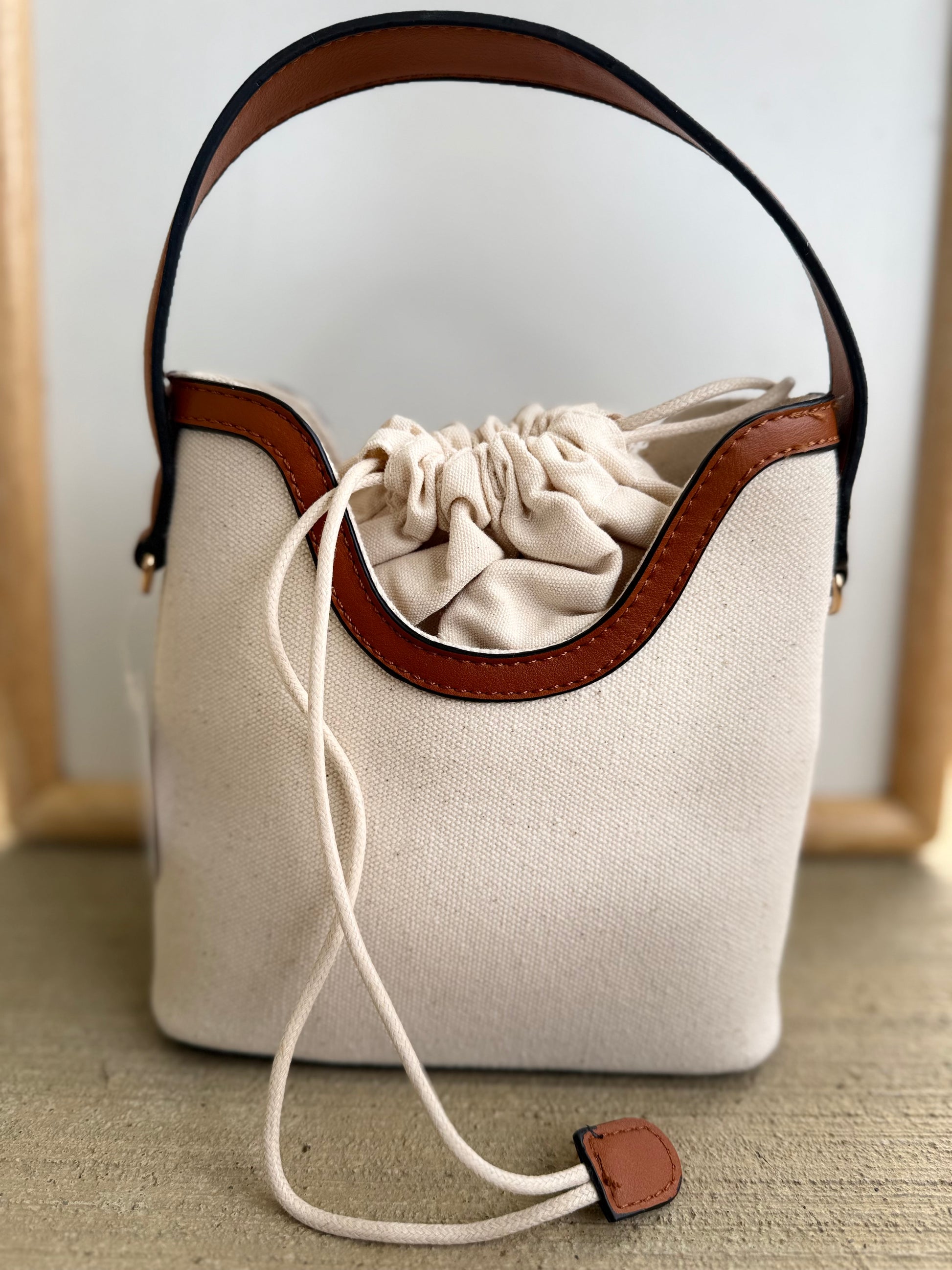 Drawstring Satchel Canvas Crossbody Bucket Bag